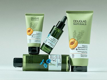 Our portfolio includes a growing selection of vegan formulas, particularly within the Jardin Bohème and one.two.free! brands. In addition, our DOUGLAS NATURALS range is COSMOS ORGANIC certified, and we are committed to further increasing the proportion of certified products that meet these high standards. COSMOS certification ensures that all important aspects of the product—from the sourcing of ingredients to labeling—meet strict organic and sustainability criteria.